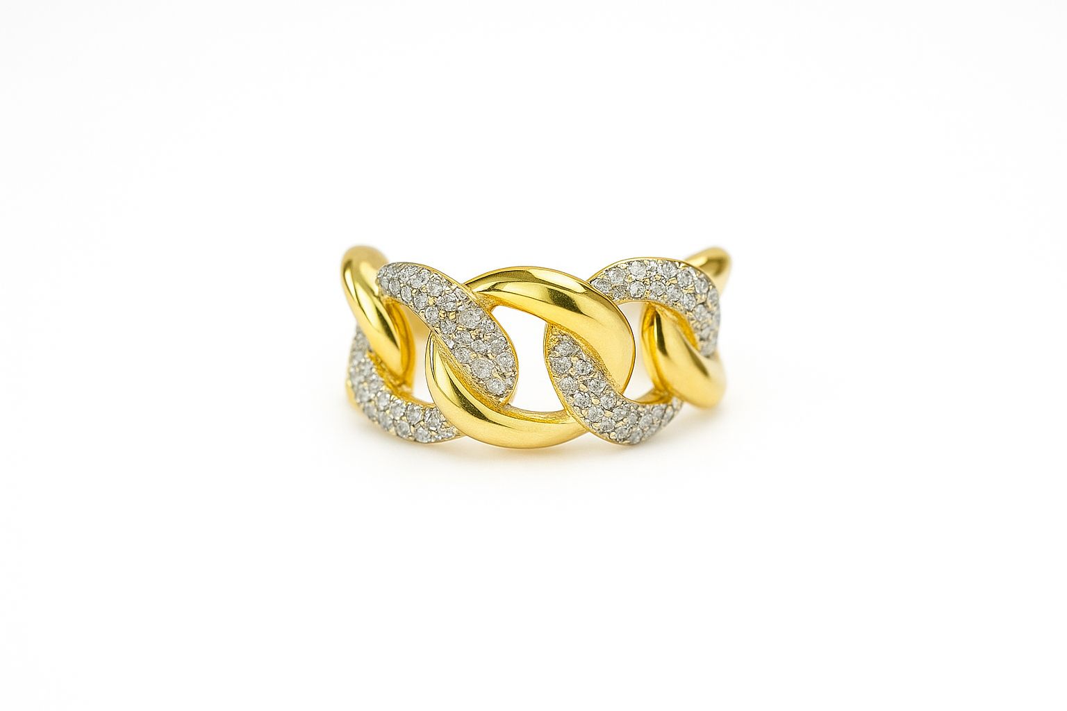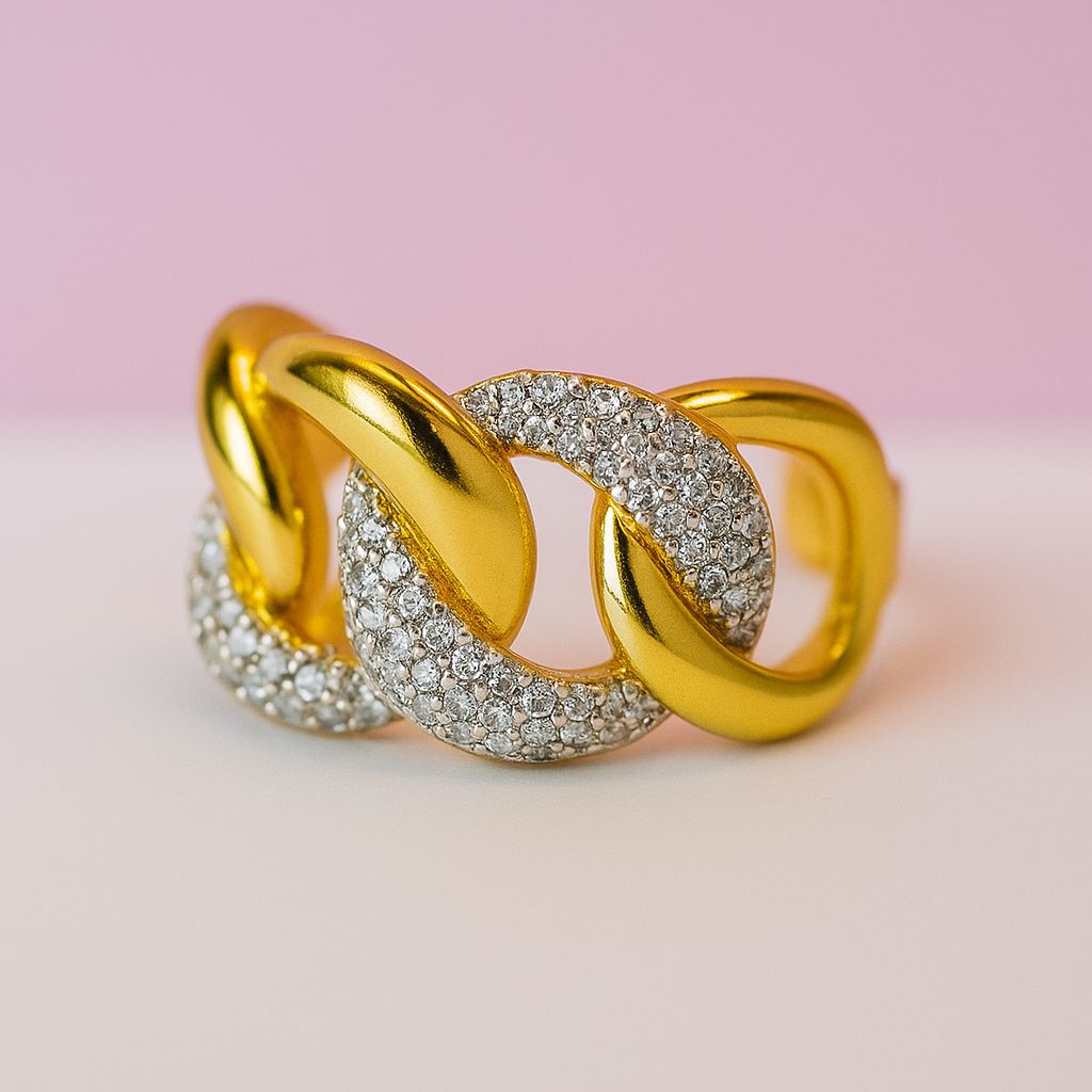 Anillo eslabones color dorado con zirconias