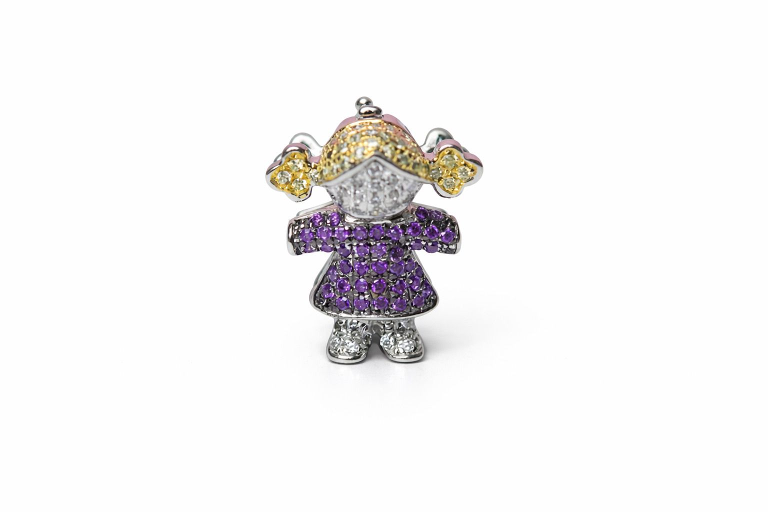 ¡Dale un toque especial a tu pulsera con nuestro encantador Charm Niña rubia con vestido lila! Este charm está hecho de plata 925, lo que garantiza su durabilidad y belleza.