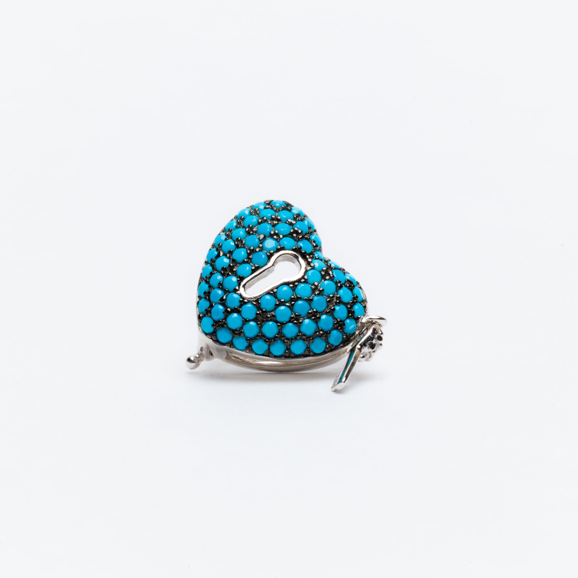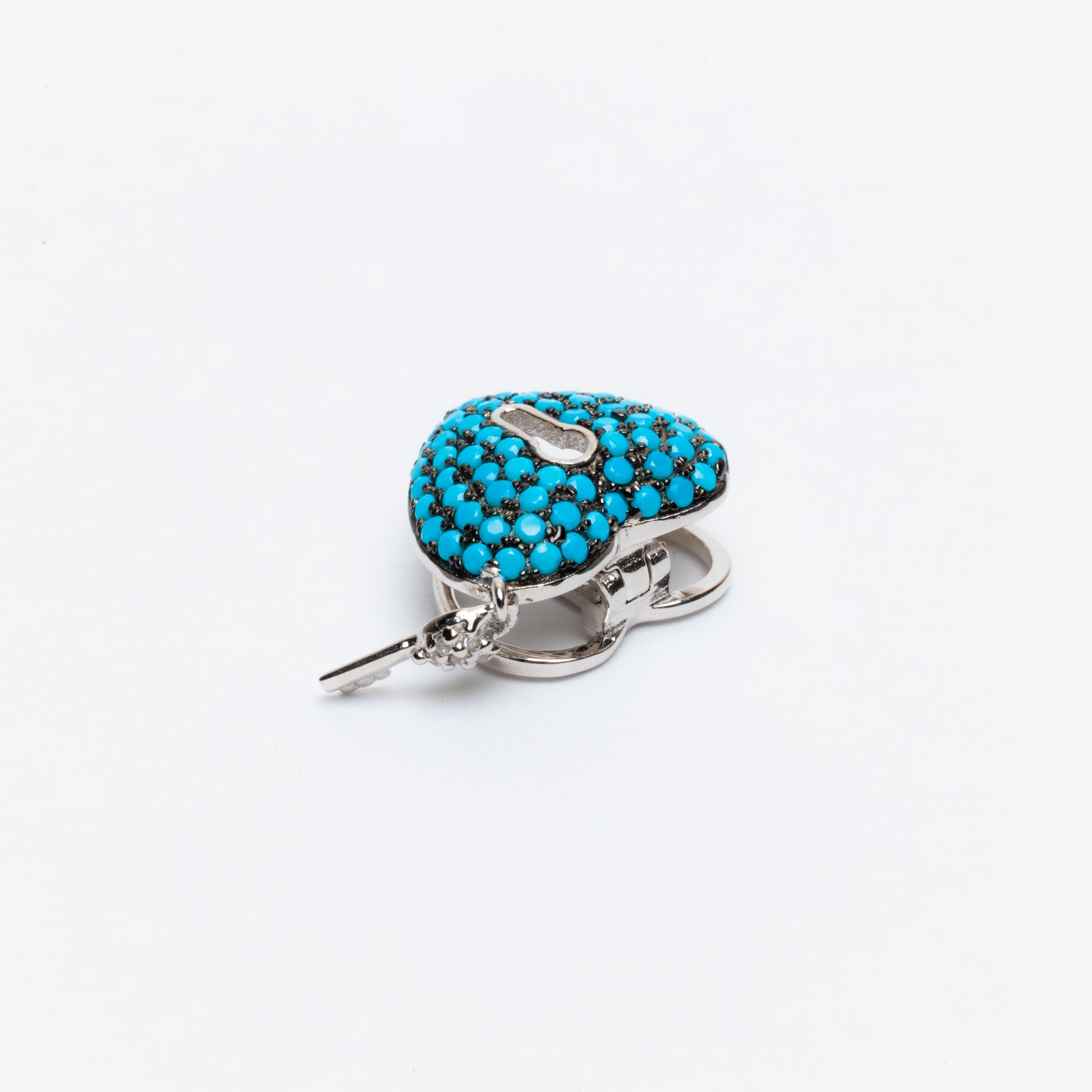 Descubre la elegancia y el simbolismo en este dije de corazón con llave, delicadamente acabado con un bicel dorado que resalta su diseño único. La piedra turquesa añade un toque de color vibrante y energía positiva, haciendo de esta pieza un accesorio perfecto para expresar amor y protección. Ideal para regalar o para complementar tu estilo con un detalle lleno de significado.
