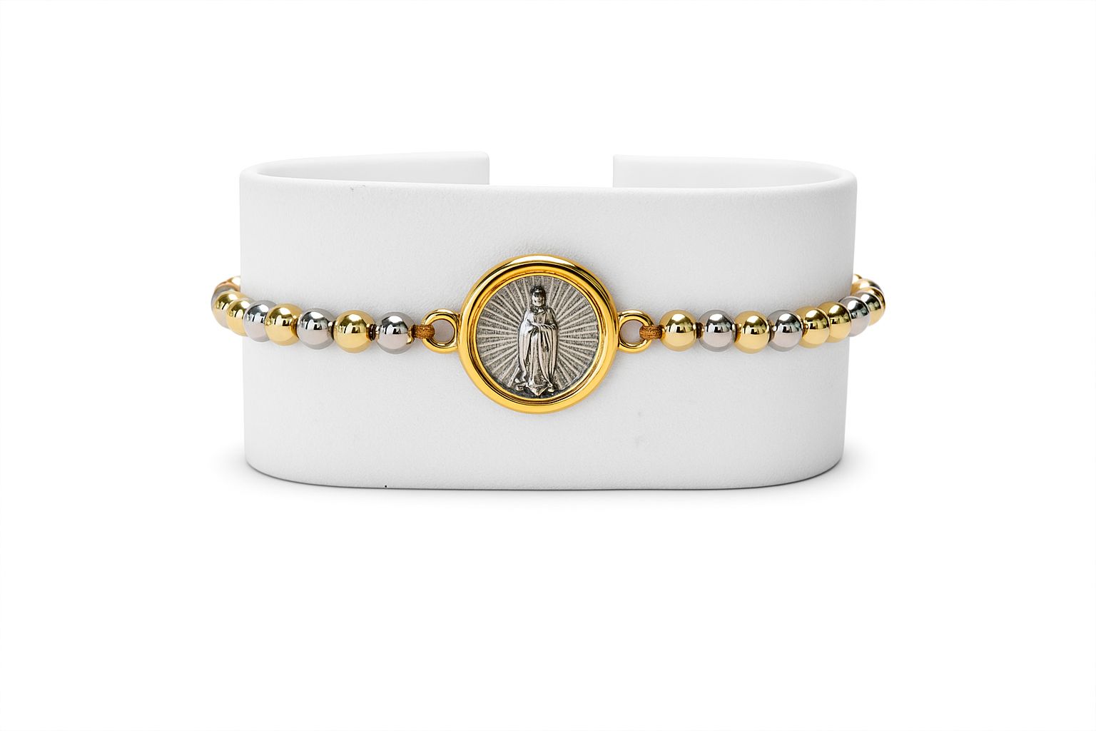 Pulsera ajustable que fusiona lo sagrado con el estilo. Elaborada en hilo café resistente, combina detalles dorados y plateados que capturan la luz con cada movimiento. La Virgen de Guadalupe, símbolo de protección y fe, se convierte en tu amuleto personal. Perfecta para quien se atreve a llevar su devoción con confianza y elegancia. Un accesorio que trasciende lo ordinario.